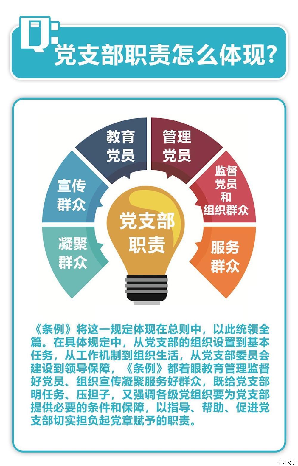 第二條 黨支部是黨的基礎(chǔ)組織,是黨組織開(kāi)展工作的基本單元,是黨在社會(huì)基層組織中的戰(zhàn)斗堡壘,是黨的全部工作和戰(zhàn)斗力的基礎(chǔ),擔(dān)負(fù)直接教育黨員、管理黨員、監(jiān)督黨員和組織群眾、宣傳群眾、凝聚群眾、服務(wù)群眾的職責(zé)。