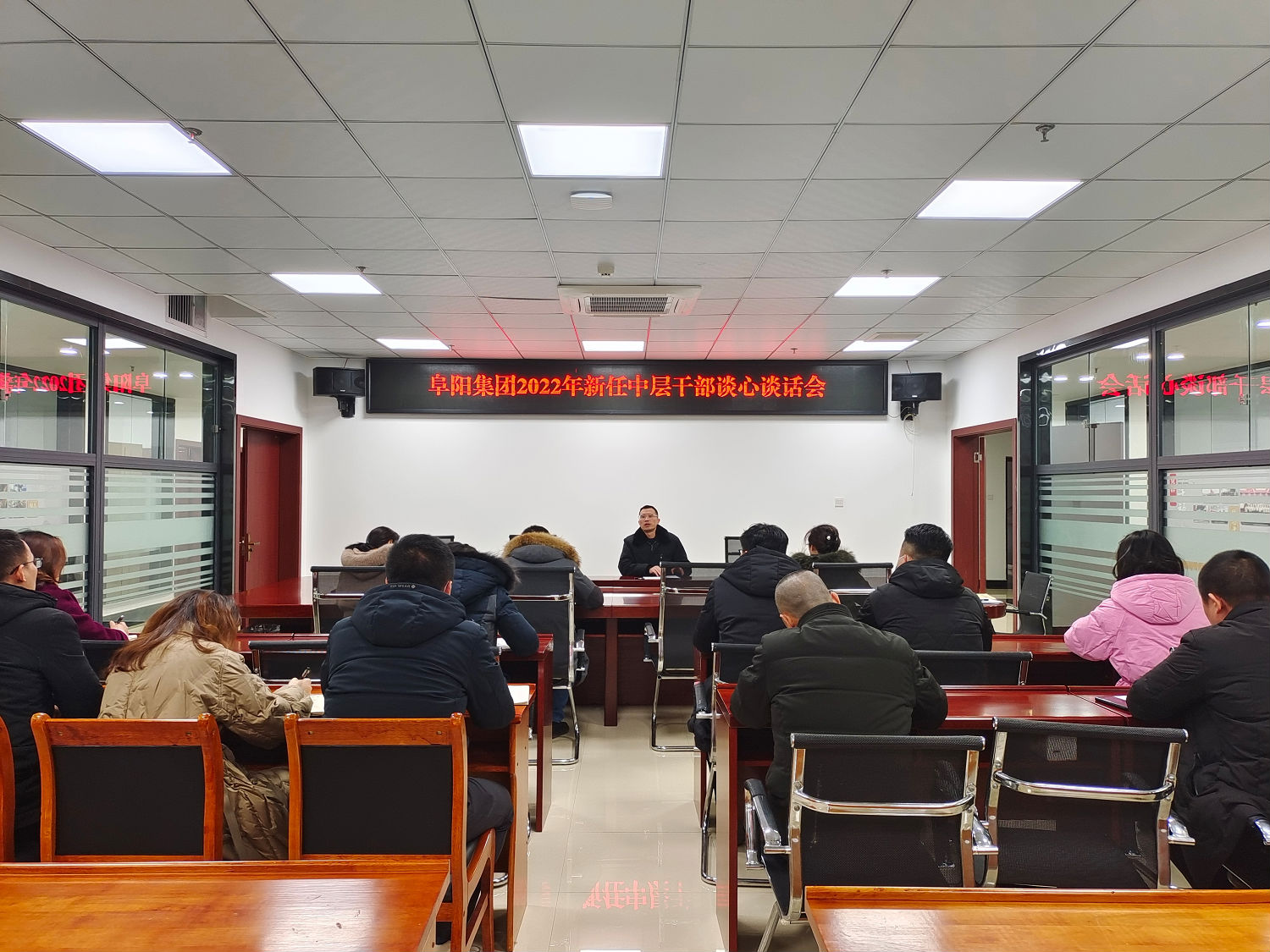2022 年 2 月 9 日, 阜陽(yáng)集團(tuán)公司黨委副書記、 紀(jì)委書記 聶仕華對(duì)新任中層干部開展任前集中廉潔談話。