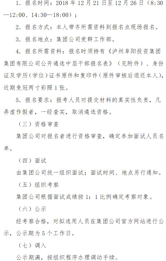 瀘州阜陽投資集團(tuán)集團(tuán)有限公司關(guān)于面向全集團(tuán)公開遴選中層干部的公告
