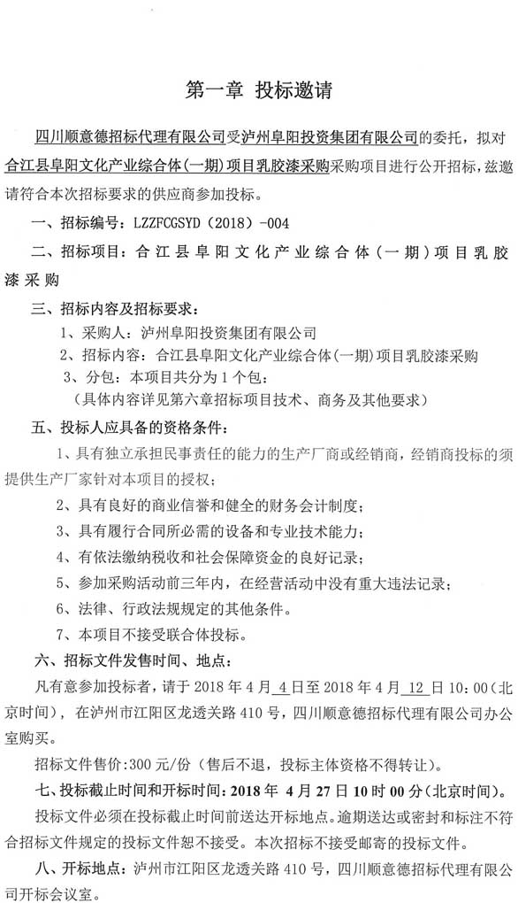 投標(biāo)邀請(qǐng):合江縣阜陽(yáng)文化產(chǎn)業(yè)綜合體(一期)項(xiàng)目乳膠漆采購(gòu)