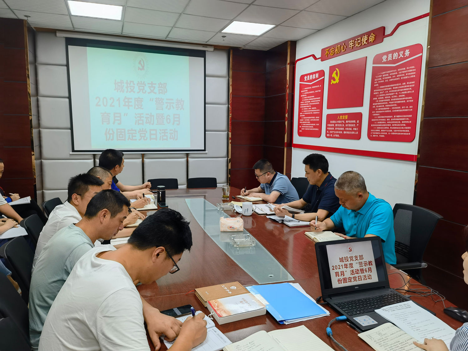 2021年6月9日下午,城投黨支部組織全體黨員同志、中層及以上領(lǐng)導(dǎo)干部、入黨積極分子等重點(diǎn)崗位人員開(kāi)展2021年度“ 警示教育月 ”活動(dòng)暨6月份固定黨日活動(dòng)。