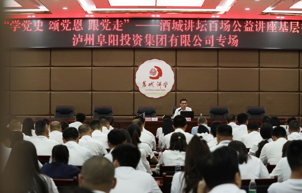 5月19日下午,“學(xué)黨史頌黨恩跟黨走”——酒城講壇百場(chǎng)公益講座基層行瀘州阜陽(yáng)投資集團(tuán)有限公司專(zhuān)場(chǎng)在政務(wù)中心15樓會(huì)議室舉行?;顒?dòng)由黨委書(shū)記、董事長(zhǎng)游啟君主持,合江縣委宣傳部派出指導(dǎo)人員,集團(tuán)全體領(lǐng)導(dǎo)班子、本部及下屬公司職工200余人參加。
