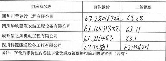 中選單位為:四川科源暖通設備工程有限公司,中選金額為:629582.01元。