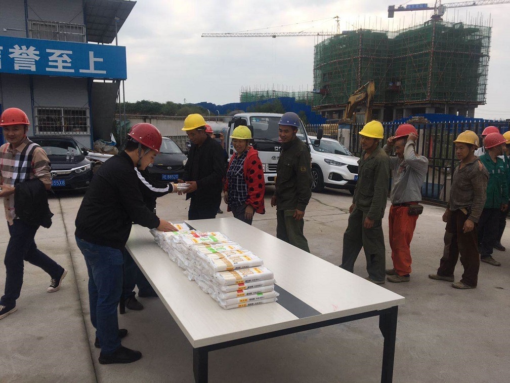 在中秋國慶雙節(jié)來臨之際,合江縣住房和城鄉(xiāng)建設(shè)局歐耀檣副局長帶領(lǐng)質(zhì)量安全監(jiān)督站人員到鑫晟學(xué)府項(xiàng)目為一線工人發(fā)放國慶面。歐耀檣副局長向常年奮戰(zhàn)在一線的建筑工人致以節(jié)日的問候,希望一線工人在工作中要時(shí)刻增強(qiáng)安全意識(shí),既要把工作干好,更要注意自身安全,度過平安、快樂、祥和的中秋節(jié)、國慶節(jié)。