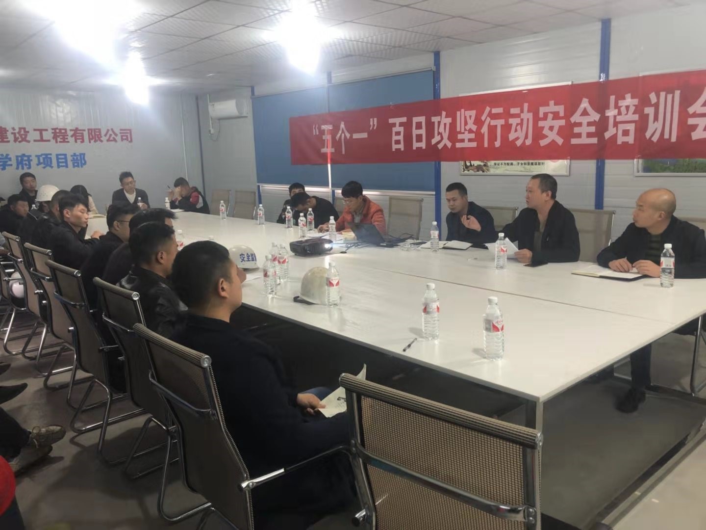 按瀘州阜陽投資集團有限公司安全生產(chǎn)委員會關(guān)于印發(fā)《安全生產(chǎn)“五個一”百日攻堅行動》的方案,我司于2019年11月15日邀請瀘州市合江縣質(zhì)安站副站長謝建國同志在鑫晟學府項目部,對施工單位、勞務(wù)管理人員、部分高危工作人員進行行業(yè)領(lǐng)域安全培訓。