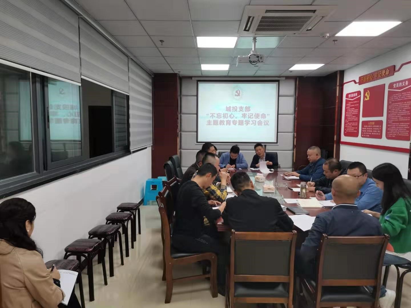 2019年10月14日下午,城投公司黨支部組織黨員、入黨積極分子、中層以上領(lǐng)導(dǎo)干部積極開展“不忘初心、牢記使命”主題教育專題學(xué)習(xí)。會議傳達(dá)了各級黨委主題教育工作的要求,并深入學(xué)習(xí)了習(xí)近平同志在慶祝中華人民共和國成立70周年大會上的講話精神和周永開同志的先進(jìn)事跡。