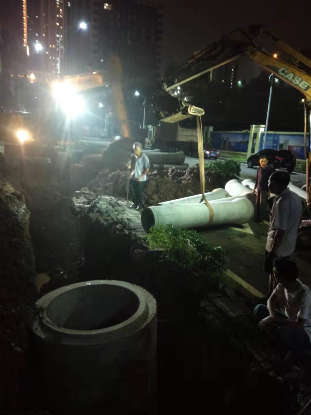 2019年7月15日晚,合江鎮(zhèn)菜壩社區(qū)軍民街因污水管道堵塞導(dǎo)致污水外溢。合江縣城市開發(fā)投資(集團)有限公司接到通知后,積極響應(yīng)縣綜合執(zhí)法局指令,立即組織施工隊伍開展應(yīng)急搶險施工,經(jīng)過連夜奮戰(zhàn),完成了排污管道的應(yīng)急搶修工作,解決了該處化糞池經(jīng)常因上游水量過大導(dǎo)致污水外溢、污染環(huán)境的問題,切實保障了群眾生命財產(chǎn)安全。