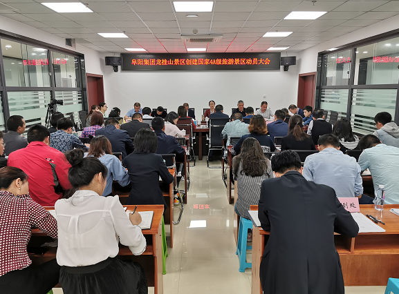 2019年5月28日,阜陽集團(tuán)龍掛山景區(qū)創(chuàng)建國家4A級旅游景區(qū)動員大會在阜陽集團(tuán)會議室召開,會議由阜陽集團(tuán)董事長游啟君主持,縣級相關(guān)部門參會,縣人大常委會副主任馮澤江、副縣長李小蓉出席會議并作重要講話。會上,阜陽集團(tuán)總經(jīng)理任東財在會上作動員講話。阜陽集團(tuán)副總經(jīng)理、符陽文旅董事長黃小林對創(chuàng)建工作進(jìn)行安排部署。