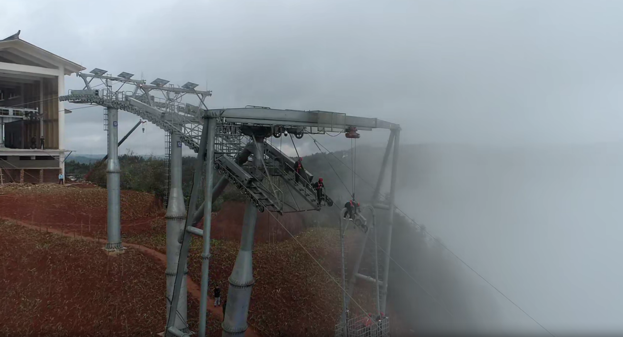 此 次 索 道 水 平 救 援 演 練 模 擬 內 容 為 索 道 9 號 支 架 至 10 號支架之間突發(fā)故障, 兩名游客被困吊廂等待救援。 上午 9 點 30 分 , 龍 掛 山 景 區(qū) 索 道 應 急 救 援 指 揮 部 立 即 啟 動 索 道 高 空應急救援預案, 并立刻派遣救援人員趕到事故地點開展營 救。